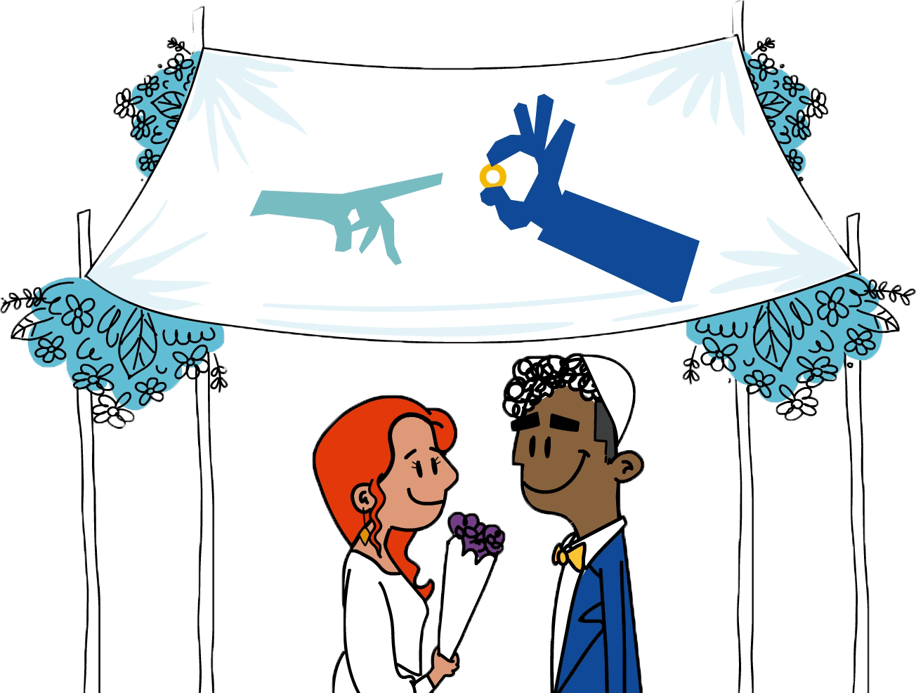 החופה היא הרגע בו האהבה שלכם מקבלת משנה־תוקף משפטי, דתי וחברתי. אתם חלק מהמעגלים סביבכם, הם חלק מכם, וכולכם יחד – גם אנחנו, בצהר – חולקים זהות יהודית משותפת, גדולה מאיתנו. ראו את האנשים שבאו: המשפחה, החברים, הקולגות לעבודה, החברים ללימודים, אנשים שנאספו סביבכם במהלך השנים, כולם כולם באו לכאן כדי להכיר בכם, לשמוח אתכם ולתת תוקף לאהבה שלכם. איזה יופי!